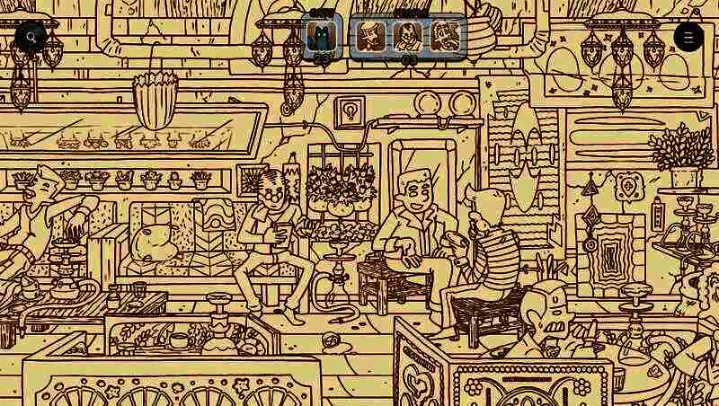 游戏采用渐进式场景激活机制:初始画面为无色线稿,玩家通过点击发现隐藏猫咪,逐步为城市注入色彩。每只猫对应专属收集卡,解锁图鉴同时推进剧情。特色文化解谜系统融入土耳其咖啡仪式、苏丹传说等元素,触发“飞毯上的御猫”等趣味小剧场。更创新引入双人协作模式——儿童负责涂色互动,成人破解基于谚语的逻辑谜题,实现跨年龄层的家庭共玩体验。