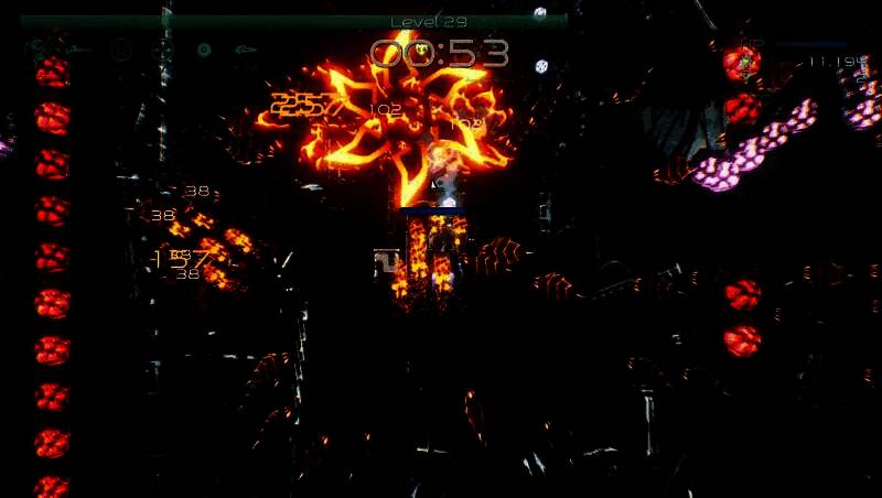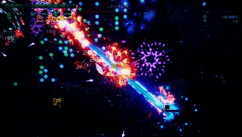 游戏采用轻度肉鸽设计,核心玩法聚焦于双摇杆移动与自动射击机制:玩家专注走位闪避,系统自动锁定并攻击近身敌人。每局通过随机事件节点选择路线——挑战强敌获取高回报、修复机体恢复状态或开启宝箱获取稀有部件。Build构筑是通关关键,合理搭配高频武器(如散射枪)与增益模块(如过载充能),可实现爆发流、持续压制等战术风格。