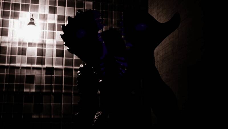 2、细节刻画精细,动态光影投射在剥蚀墙面上,灰尘粒子随脚步扬起;怪物融合幼儿特征与异形躯体(如多眼蜘蛛头),视觉冲击强烈。