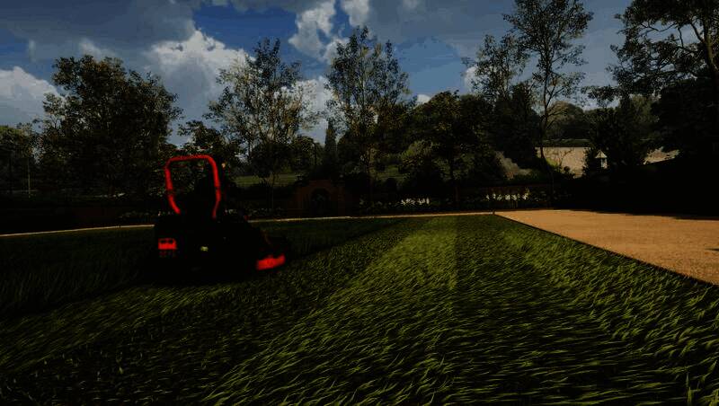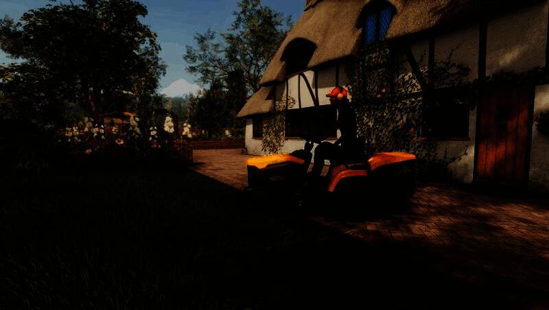 视觉表现上,《割草模拟器》采用高精度3D建模技术,细致刻画英国乡村四季更迭的自然景观,从春日嫩绿到秋日金黄,配合动态光影与粒子特效,营造出治愈系美学风格。割草机内部结构亦精益求精,驾驶舱内可交互的按钮、跳动的转速表、旋转的刀盘动画均贴近现实工程逻辑。第一人称视角下,草屑随刀片飞舞、雨水在挡风玻璃滑落的细节令人惊叹;第三人称视角则便于观察整体修剪路径。多平台用户评测指出,其画面表现力在同类模拟游戏中处于领先地位。