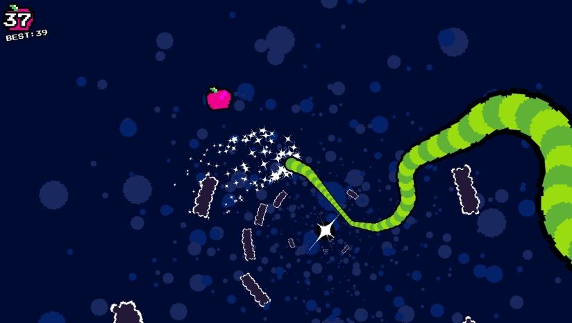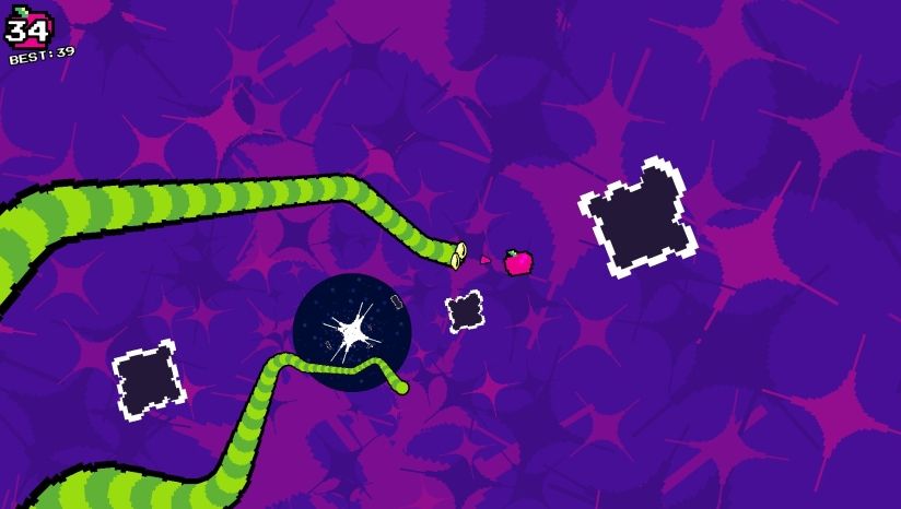 《Deep Snake》采用高饱和度霓虹视觉风格,背景以紫蓝渐变为主色调,伴随心跳节奏脉冲闪烁,几何障碍呈现流体动态效果。尽管画面炫酷,但通过亮色蛇身与暗色环境的高对比设计,保障操作辨识度。音效方面,每增长一节蛇身,电子节拍便叠加一层,形成“成长即音乐”的沉浸反馈;碰撞时触发的空间撕裂声效,进一步强化失败惩罚的心理冲击。玩家社区评价其为“最带感的极简主义音画协同案例”。