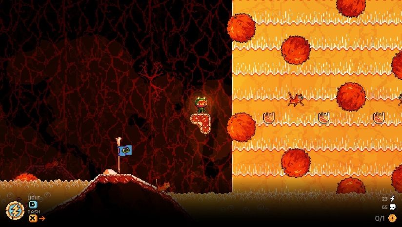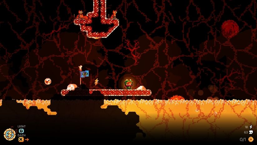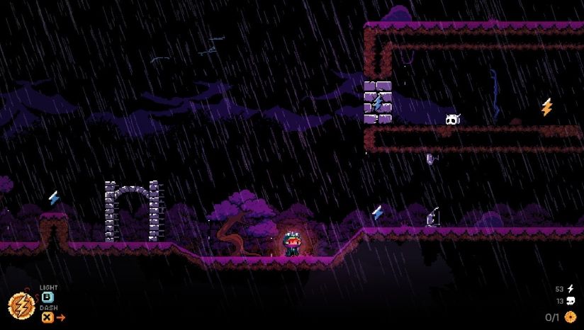 游戏核心操作围绕高精度平台跳跃展开,二段跳与冲刺构成移动基础,而关键创新在于“闪电护身符”系统——短暂释放强光可照亮黑暗、揭示隐藏路径,并激活解谜机关。但这一能力受限于能量收集,且在不同场景使用会引发连锁反应:在怪物体内施放将唤醒追击鬼魂,森林区域则可能引燃蔓延火焰,极大提升了策略深度与紧张感。关卡设计节奏多变,融合飞翔追逐、自由落体逃生与动态解谜战斗,每一场Boss战都需针对性应对,例如“邪恶伞化身”会模仿主角动作,考验反应极限。