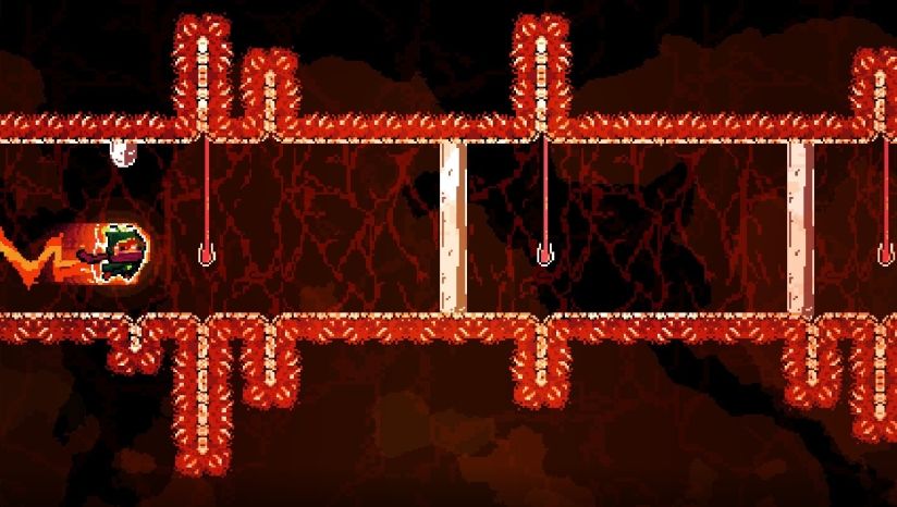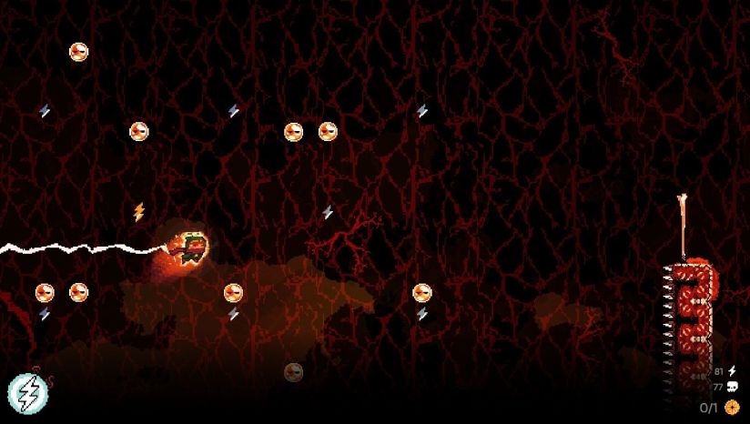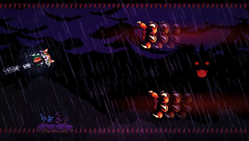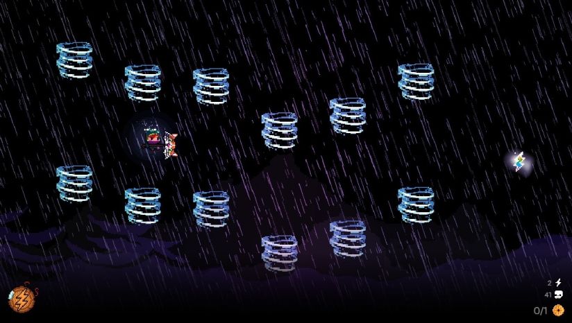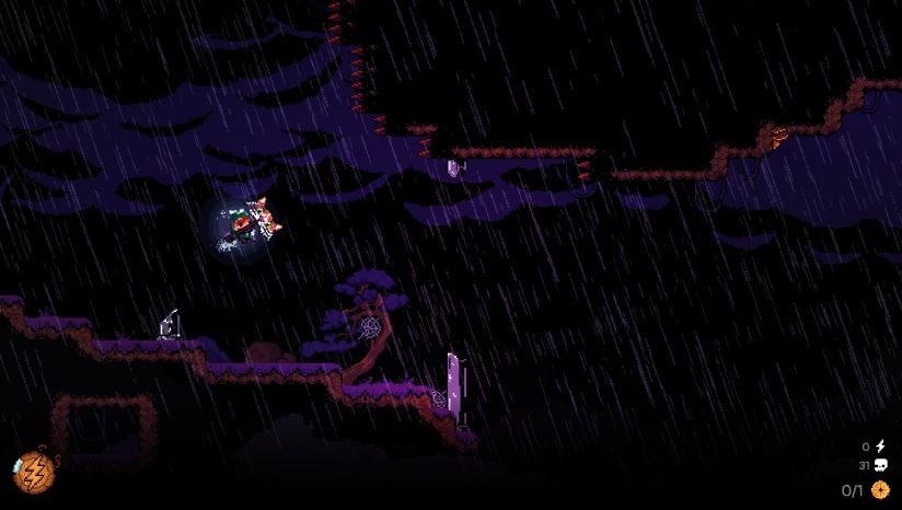 美术上,《恶魔细雨》成功融合可爱与微恐元素,构建出独特的视觉张力。黑暗雨夜中仅靠闪电瞬照勾勒环境轮廓,带来强烈压迫感与探索惊喜;各区域风格鲜明——从幽绿雾林到帕祖祖体内蠕动的血肉通道,再到梦境中关节扭曲的空间透视,均通过像素艺术精准传达诡异氛围。特别提醒:部分梦境关卡使用视觉震荡与旋转特效,可能引发敏感玩家晕眩,建议适度游玩。