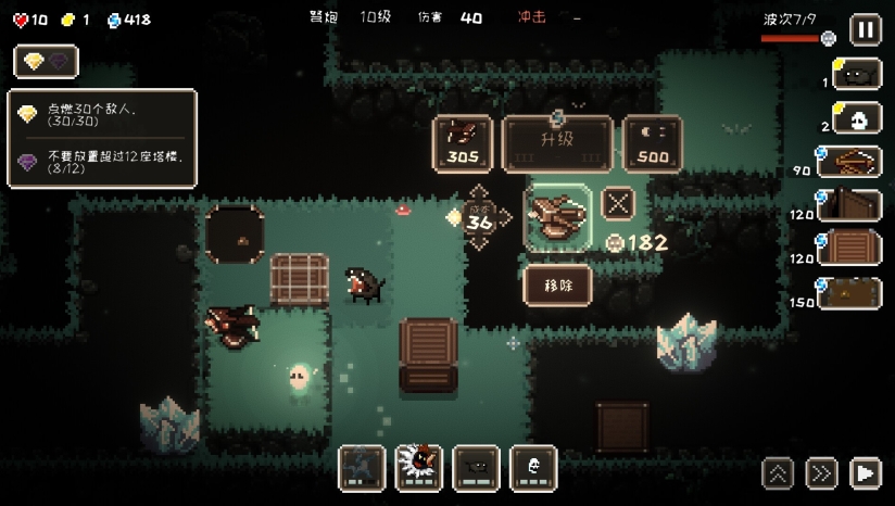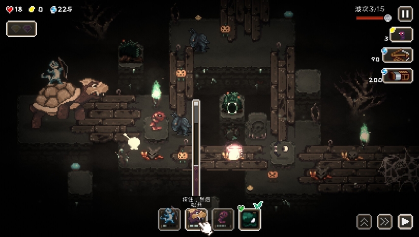 游戏中提供12种功能各异的陷阱装置,涵盖重力场、屏障墙等类型,每种拥有两条升级路线。玩家可利用物理机制改变地形结构,引导敌人进入伏击区或坠入深渊。空格键实时部署,配合WASD走位操作,实现精准控场。此外,陷阱与环境元素联动(如熔岩引爆陷阱),进一步深化策略深度。