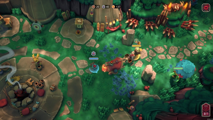 游戏核心机制围绕“昼夜循环”展开,玩法极具创新。白天安全期需高效收集木材、草药、金币等资源,用于升级马车防御、修复损伤或布置陷阱;夜晚则进入高压防守阶段,土匪兔子、狂暴獾类等敌人蜂拥而至,必须守护信标火焰不灭——一旦熄灭,敌袭强度将大幅上升。每次旅程路线随机生成,岔路选择影响资源获取与风险等级,搭配实验性无尽模式,战术组合千变万化。