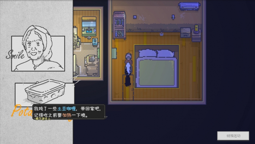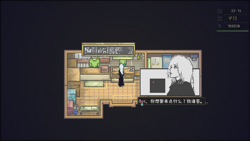 突破传统像素游戏表现力边界:独创「动态像素着色引擎」,使同一角色在昼夜更替中呈现200+色彩渐变;关键剧情采用「手绘漫画转场」,战斗胜利画面会迸发油墨飞溅特效。更埋藏37处「彩蛋级细节」——如反复点击咖啡机可解锁开发者日志,长按Bot头盔3秒触发其播放90年代马来西亚电台广播,让复古美学成为叙事本身。