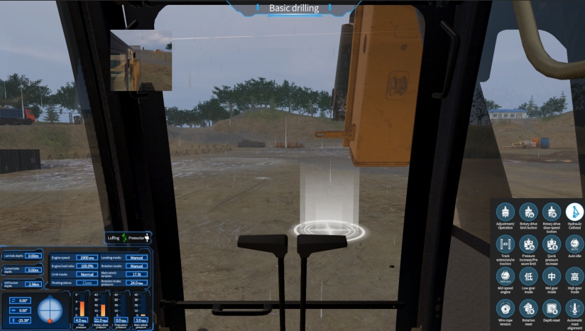 游戏以“真设备、真流程、真反馈”为设计准则,三类主力机械各具技术纵深:挖掘机支持全链路土方作业训练,含启动自检、行走转向、铲斗复合动作及装车协同;旋挖钻机完整复刻桩基施工全流程——从平板车卸载、立桅调平、多层地质钻进(砂土/卵石/中风化岩)到钻杆自动拆装;塔式起重机则聚焦高空吊装安全规范,集成风速预警、载荷动态计算、多信号员语音交互系统,并通过吊钩四视角(驾驶室/吊钩前/吊钩后/外部全景)强化空间判断能力。值得一提的是,所有设备均接入ISO 10218工业操作标准参数库,确保教学合规性与职业适配性。